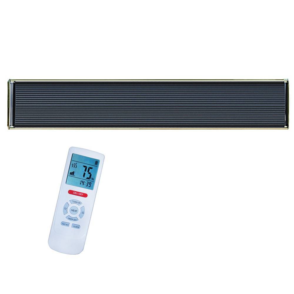 Завершает категорию галогенный обогреватель с мощностью 2000 Вт, который имеет алюминиевый кожух. За счет такой реализации вес прибора составляет всего 800 г. Производитель разрешает высоту установки до 2.2 м на потолке. Несмотря на компактные габариты 39х15х8.5 см, внутри аппарата находится аж три лампы. В отзывах покупатели делятся, что сперва не верили, как такая «малютка» способна обогреть 20 м². Но на практике прибор работает отлично и заявленная мощность легко справляется с отоплением заданного пространства.