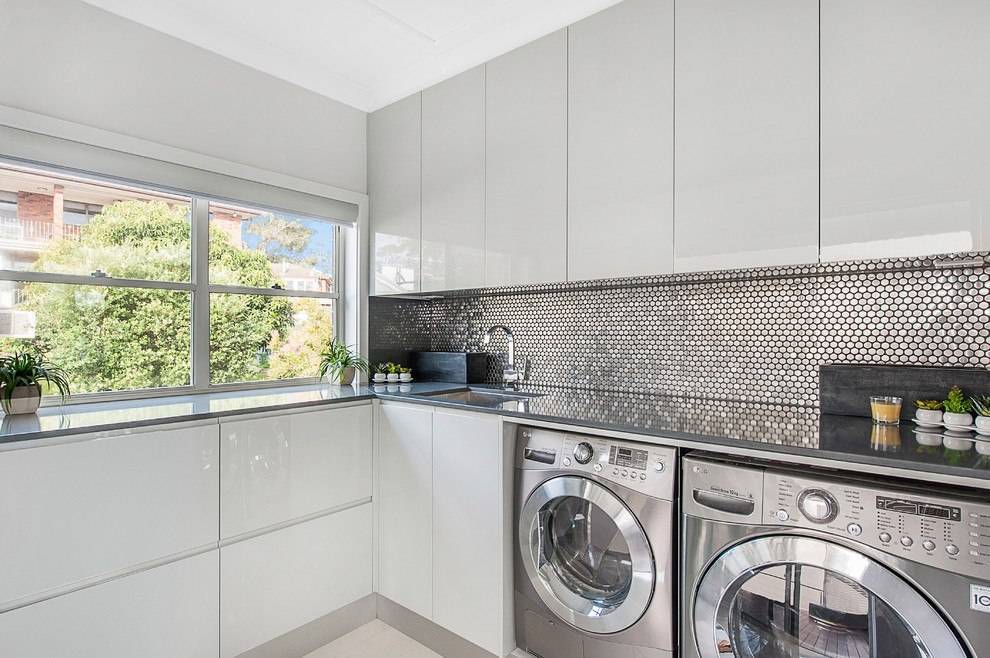 Стационарное размещение двух стиральных машин на кухне для большой семьи