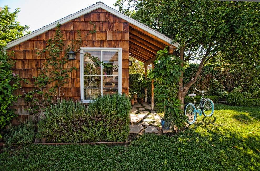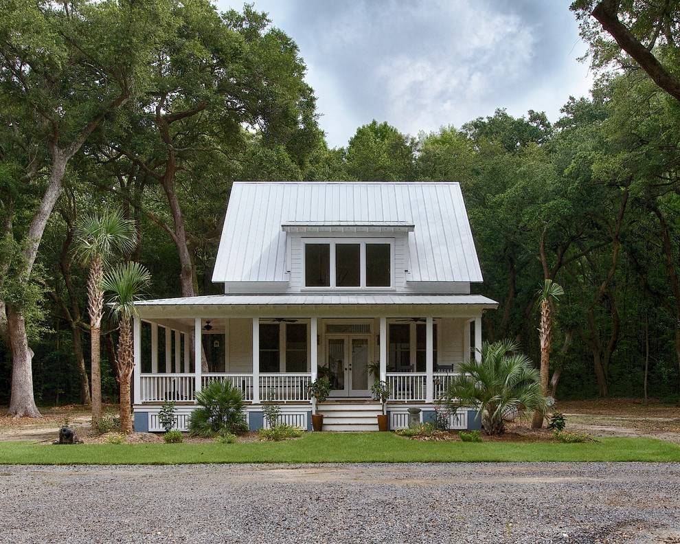 еще одна хитрость – сделать большой навес над крыльцом дачного дома. Крытую территорию можно использовать для обедов и ужинов на свежем воздухе и как зону отдыха, обустроив ее необходимой садовой мебелью.