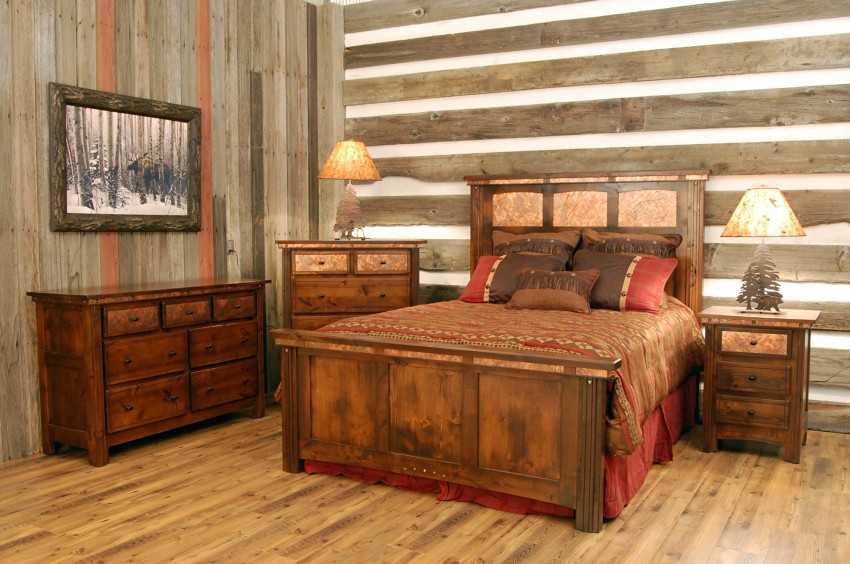 | Кантри | Кантри отличается натуральностью материалов, поэтому бревенчатые столы, стулья, кровати, тумбы отлично впишутся в помещения такого стиля. |