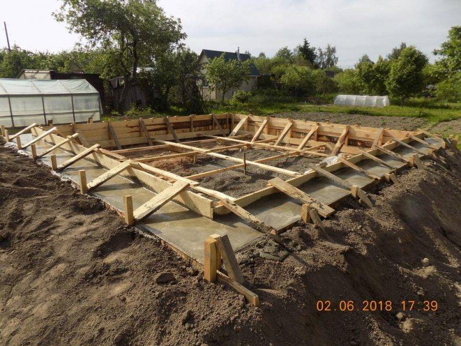 Высокие располагают на 10-20 см выше над поверхностью земли, чаще на пучинистых землях. Низкий монолит заливают вровень с поверхностью грунта. Для заглубленного выкапывают траншею.