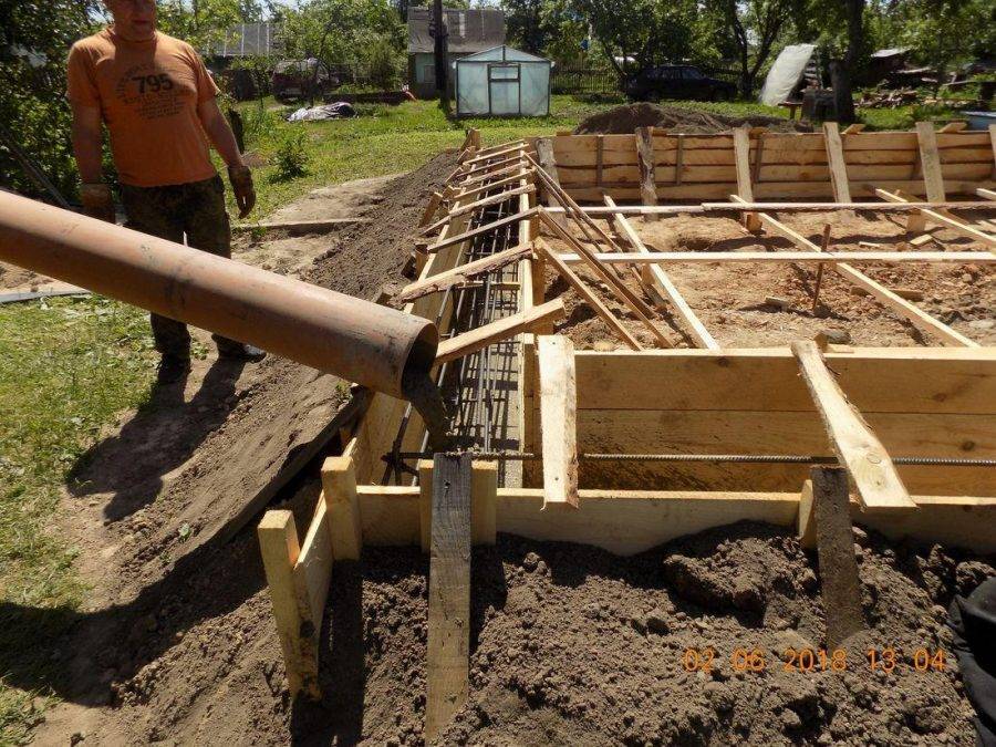 -При самостоятельном изготовлении такого фундамента лучше всего привлечь для работы большое количество людей, чтобы обеспечить быстрое приготовление бетона и его одноразовую заливку.