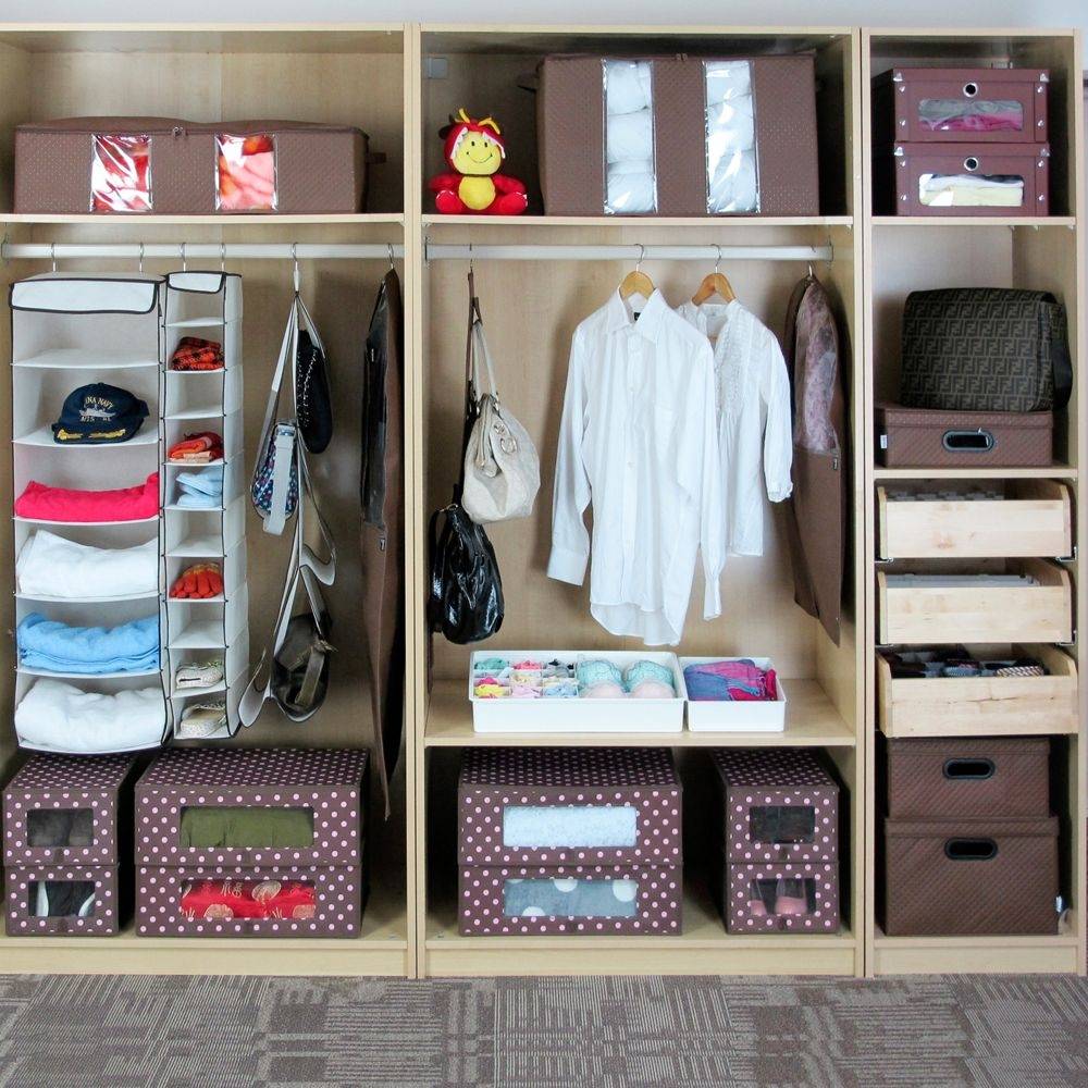 Очень удобным девайсом для хранения мелких вещей являются картонные коробки. В них можно поместить не только одежду, но и другие мелочи. Выпускаются разных размеров и разного качества. Удобство хранения обеспечивается ещё и формой коробок. Прямоугольными аксессуарами можно заполнить максимальное пространство.