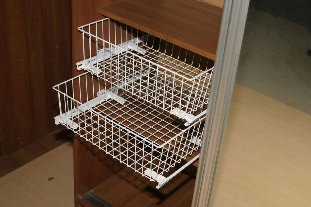 ![]() | Аналогичным образом устанавливаем корзину с разделительными планками и обувница. |