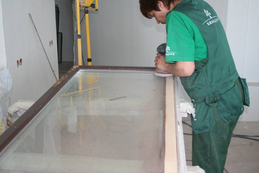 Необходимо дождаться, чтобы подоконник хорошо просох. Если слой шпаклёвки толстый, на это уйдет около двух суток. Зашлифуйте подоконник вручную или виброшлифовальной машинкой.
