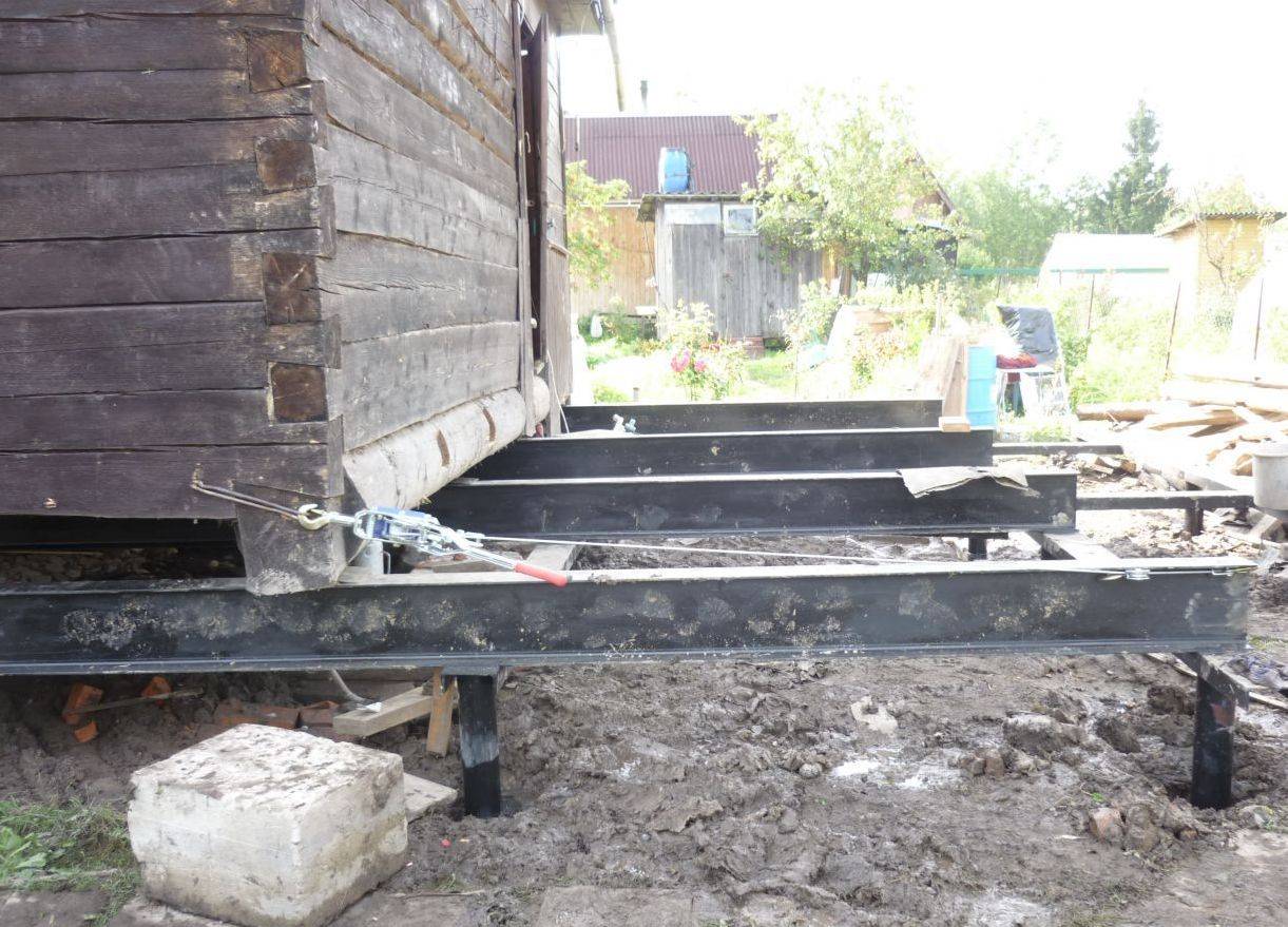 Частичная разгрузка платформы дома производится с применением деревянных или металлических опор и подкосов.
