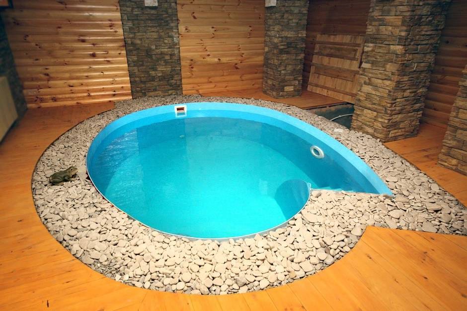 Для идеального климатического соотношения, а также комфортного времяпрепровождения в помещении с бассейном, соотношение температуры воды и воздуха должно быть различным. Например, в комнате 28-29 градусов, в водоеме – где то 26. Стены чаще всего утепляются с уличной стороны