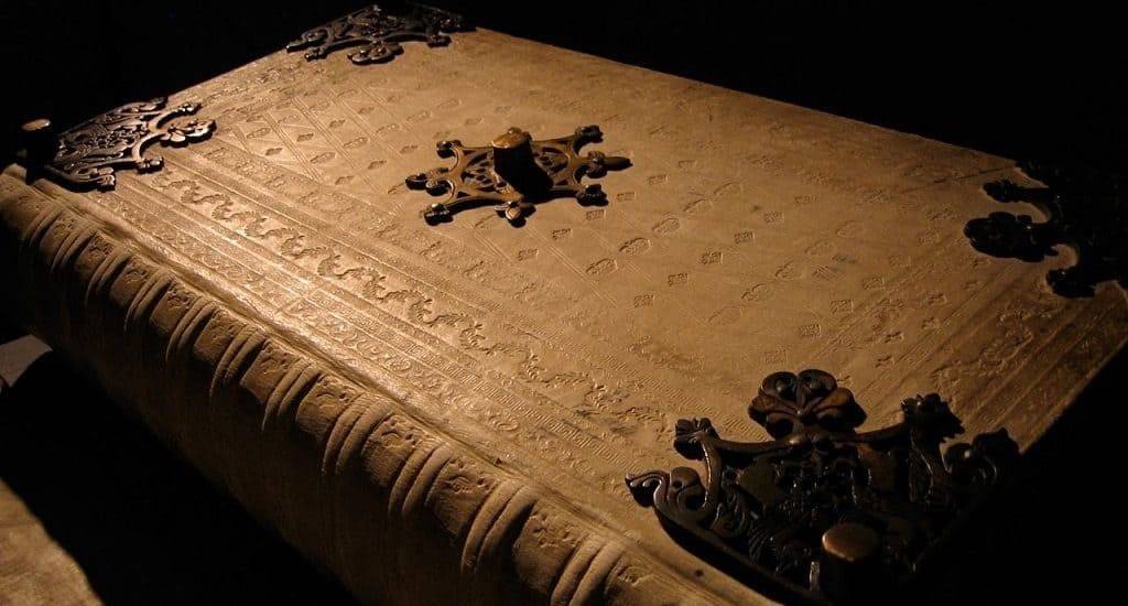 В специальном футляре из дуба огромная Библия хранится в библиотеке Абелиского Христианского Университета.