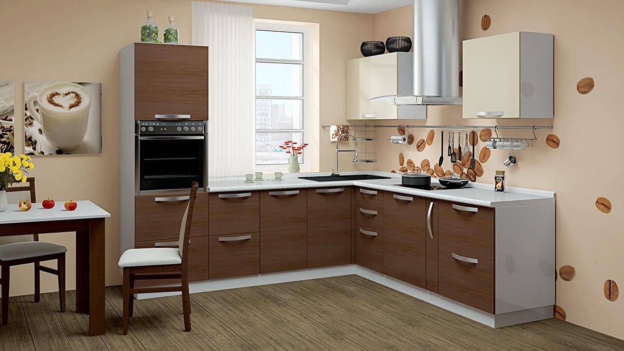 Вариантов Г-образной планировки существует множество. Рассмотрим самые популярные и удобные способы расположить кухонный гарнитур и бытовую технику, чтобы оставить пространство для обеденной зоны и свободного перемещения.