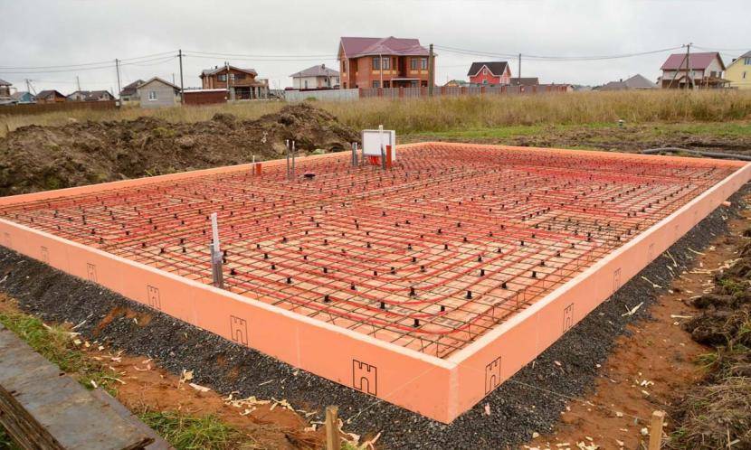 Такие сложные конструкции используются на сложных грунтах, например, с высоким уровнем грунтовых вод. Строители с большим опытом говорят, что монолитный фундамент можно применять вплоть до торфяников.