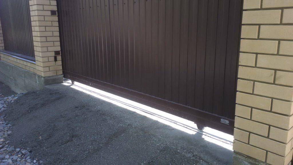 Рельсовые модели выделяются простым устройством и долговечностью. Движущийся механизм перемещается по рельсу, который закреплен в почве по линии проема. Основное полотно направлено в сторону приваренных роликов.