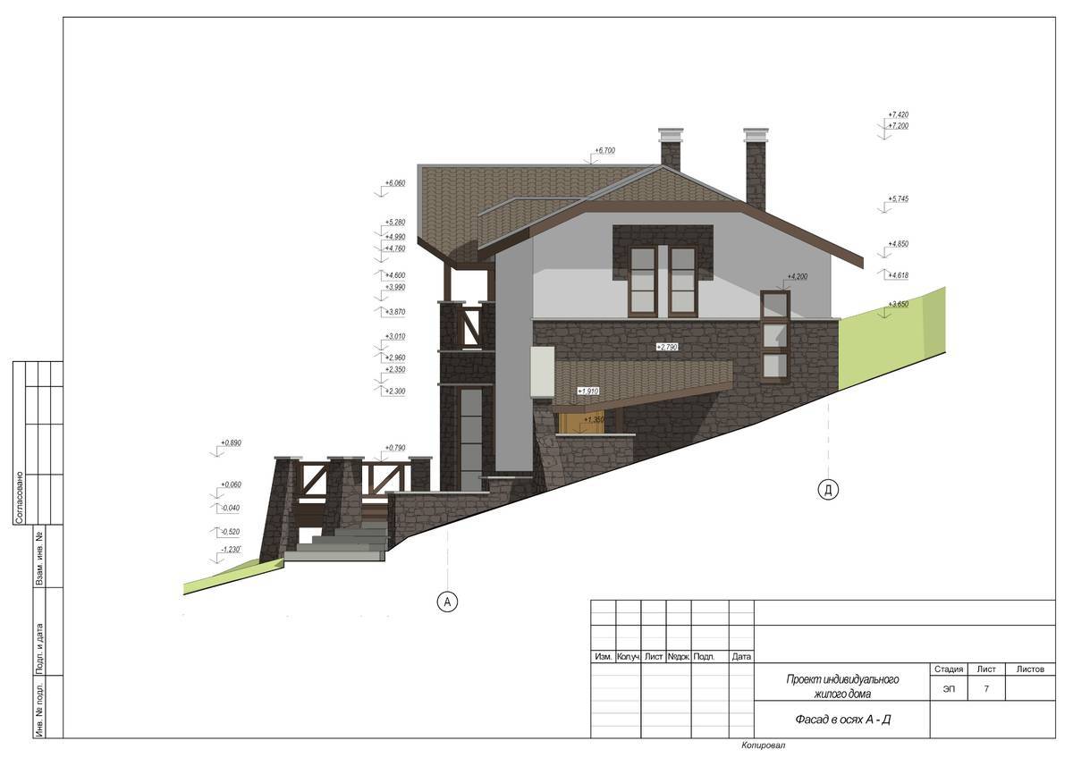 По проекту, если смотреть снаружи дома, лестница располагается справа от входной группы, в углу, где одно длинное окно