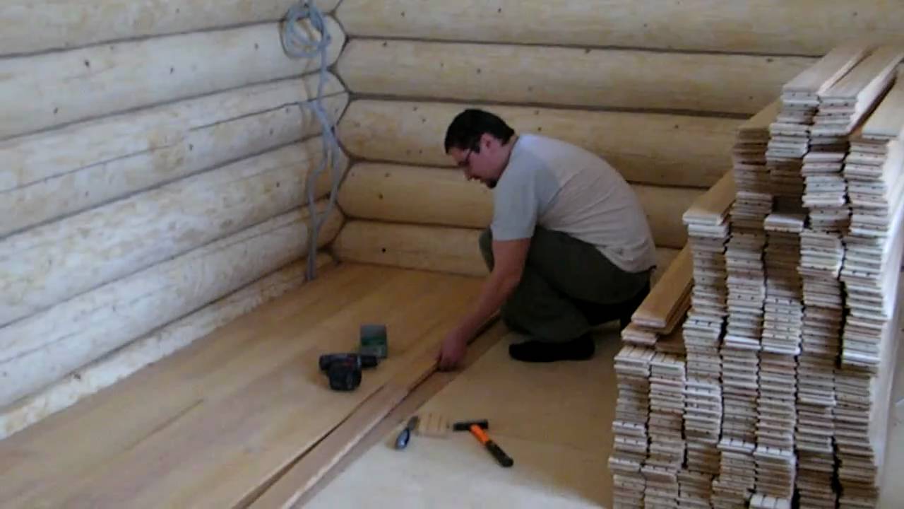 Все уложенные слои накрываются пароизоляцией, которую также прикрепляют к стенам сруба. Стыки материала проклеиваются скотчем, а его крепление осуществляют строительным степлером. Если утеплитель был уложен так, что остался вентиляционный зазор, то после окончания монтажа пароизоляции можно переходить к настилу второго слоя чернового пола. Если утеплитель был уложен по уровню лаг, то сначала требуется становить по бокам специальные рейки – они будут придавливать утеплитель, чтобы образовывался необходимый зазор. Подробное руководство о том, как укладывается пол в обычном деревянном доме, можно найти на различных видео-уроках.