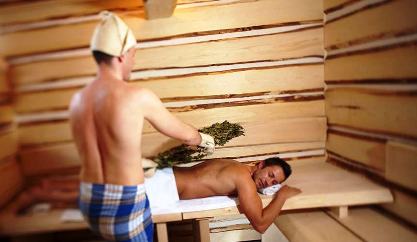 Мужчины посещают парную, вооружившись березовыми, дубовыми или эвкалиптовыми вениками. Для достижения максимального положительного эффекта от бани при