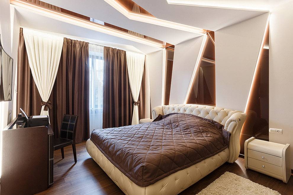 Сегодняшние разнообразные варианты дизайна позволяют выполнять самые невероятные виды потолков в квартире. Они бывают самыми простыми однотонными и представляющими собой одну плоскость. Такой вариант идеально подходит к минимализму – его чаще выполняют в светлых оттенках. Такие светлые потолки идеально подходят для всех стилевых решений. Но иногда возникают ситуации, когда хочется внести определенное разнообразие, либо дизайн требует оригинальных решений.