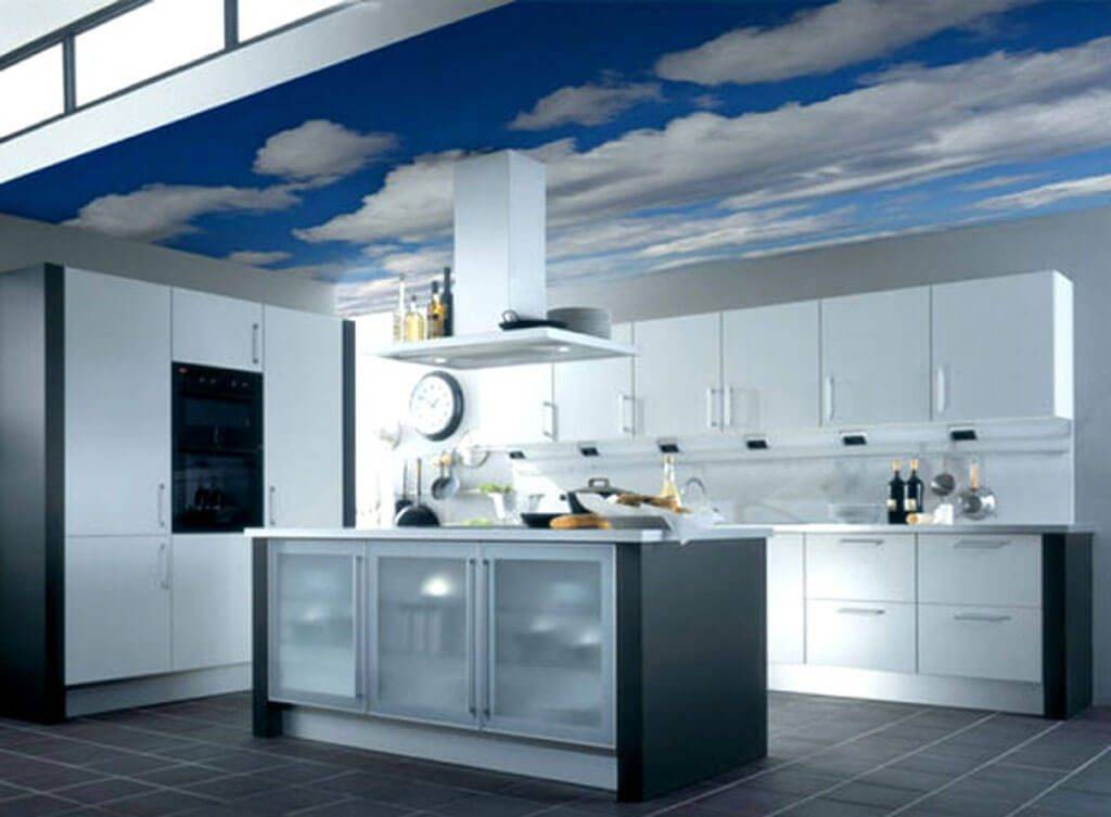 Многих волнует такой вопрос, кухня — место, где наиболее часто происходит перепад температур, повышается влажность, возможны загрязнения, так не повредят ли такие условия натяжному потолку? Не испортится ли нанесенный на него рисунок? Наш ответ однозначный — спокойно делайте натяжной потолок с рисунком, эти специфические условия ему не вредны.