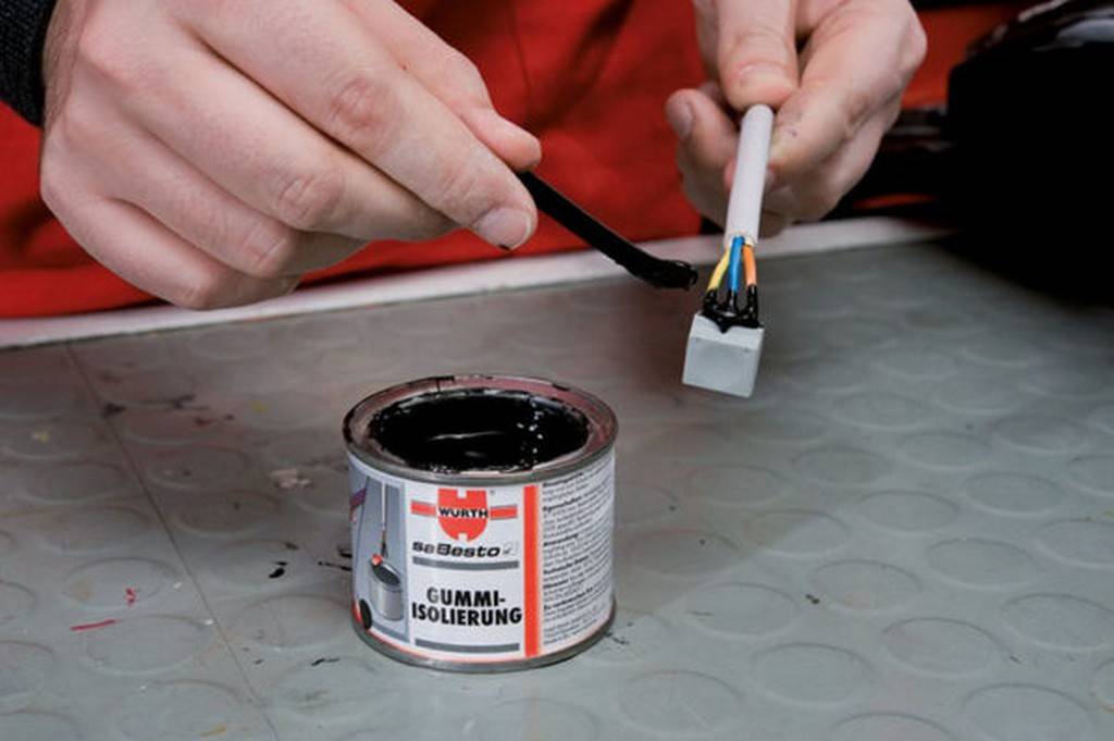 Жидкая изоляция проводов. Еще один вариант материалов для правильной изоляции проводов. Его используют в качестве восстановления защитного слоя токопроводящих жил, эксплуатация которых проходит в условиях повышенной влажности или в непосредственном соприкосновении с водой. В качестве изоляционного материала применяется полиуретановый компаунд. Его заливают в заранее подготовленную муфту через специальный бандаж. По обоим концам муфты устанавливаются резиновые уплотнители.