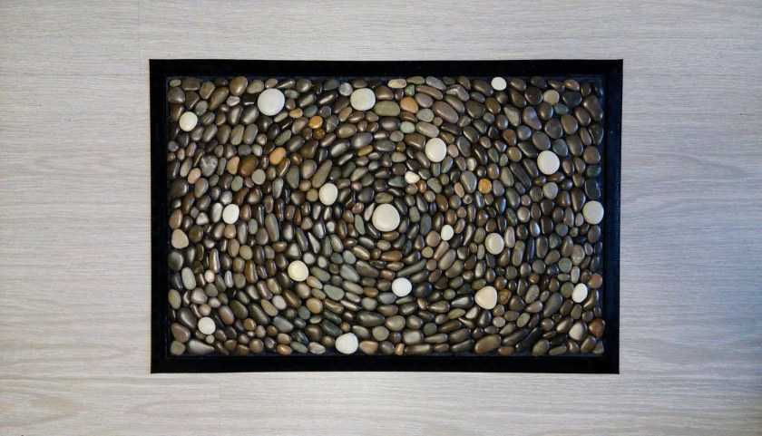 На полотно раскладываются готовые заготовки в хаотичном порядке, начиная от самых больших и заканчивая маленькими, которые заполнят образовавшиеся пустоты. Когда все готово, и полотно полностью заполнено, приступаем к приклеиванию всех фрагментов. После этого, необходимо подождать, когда клей высохнет и нанести слой лака. Он послужит дополнительным декорированием, сделав картину глянцевой и, к тому же, создаст защитный слой от влаги и вредных насекомых. На этом изготовление панно своими руками можно считать законченным. Дело останется лишь за его установкой.