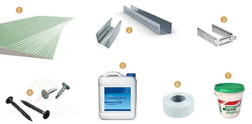 - Листы ГКЛ или ГКЛВ (в помещениях с повышенной влажностью).