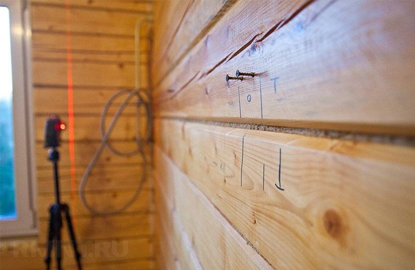 Все нужно хорошо выровнять, для этого подходит уровень. Точкой отсчета служит наибольший выступ стены. Для крепления используют саморезы с шайбами. На этом устройство деревянной обрешетки внутри дома заканчивается, дальше будет монтаж листов ГКЛ.