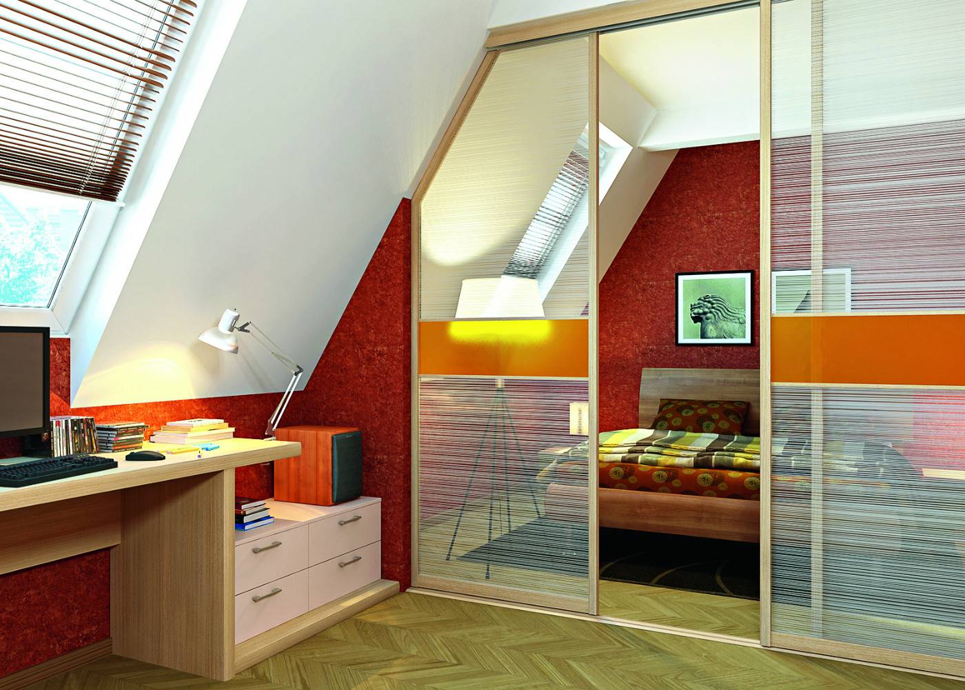 Визуально расширить границы мансардных комнат позволят полупрозрачные раздвижные перегородки. Фото: Mr.Doors