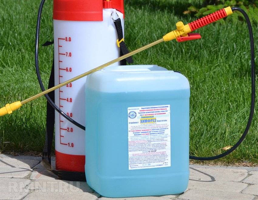 - растворитель. Готовый очиститель с агрессивным составом можно купить в строительном магазине или подготовить средство самостоятельно по инструкции производителя. Чаще всего применяют раствор соляной или серной кислоты, разведенной с водой 1:10;
