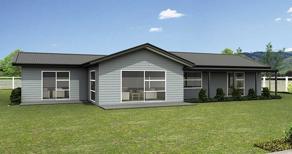Следующий план одноэтажного дома имеет Г образную форму, который и позволяет вам получить лучшие визуальные эффекты снаружи. В этом случае это касается садов (если у вас есть красивый пейзаж впереди, вы можете ориентировать дом на эти цели). В доме есть лаундж, который может стать отличной комнатой с 180 ° визуальными эффектами – вы можете не захотеть покидать эти пространства. Частная область имеет три спальни – главная имеет гардеробную и ванную комнату, спальни для детей (2 и 3) разделяют ванную комнату с ванной.