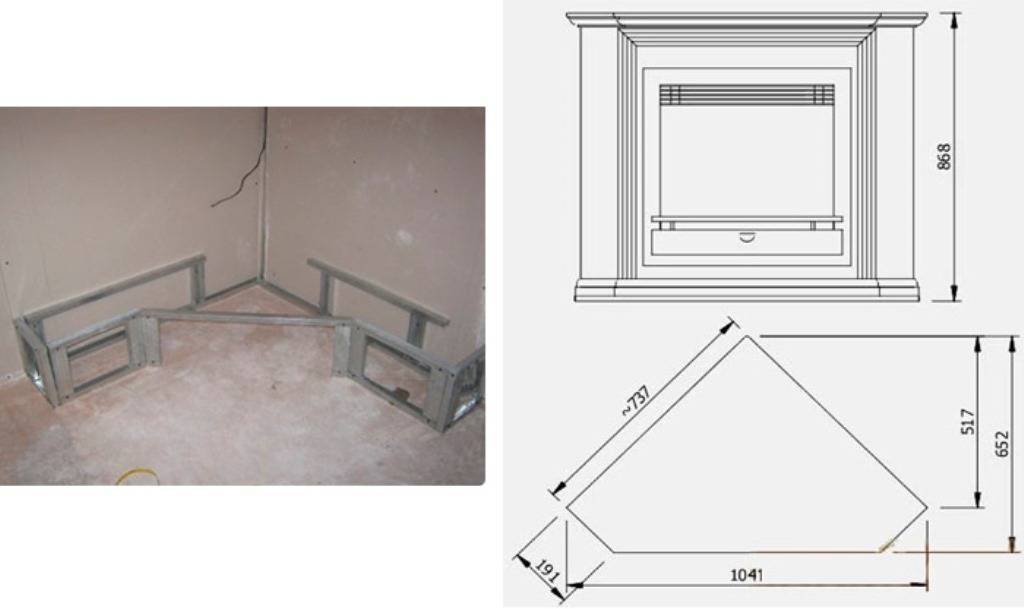 До начала установки, место монтажа размечают, обозначая местоположение опорных планок, верхней полки, крайних боковых точек. Средние габариты псевдоочага для комнаты, площадью 10-16 кв. м.: высота 770-90 см., ширина 100-120 см., глубина 25-45 см.