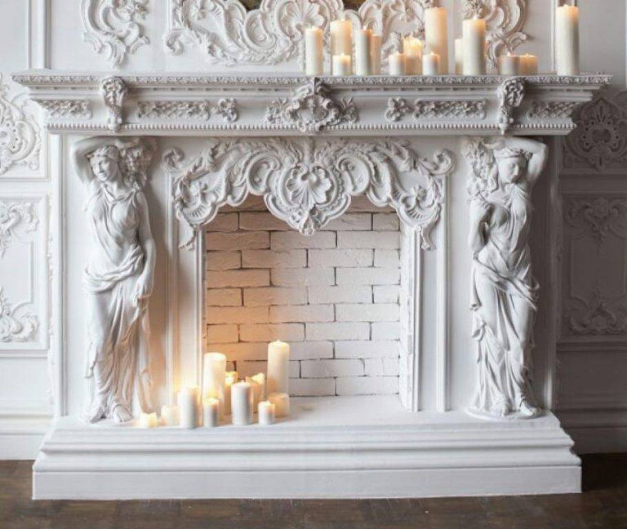 В самом начале рекомендуется определиться с дизайном сооружения – предмет должен оптимально вписываться в имеющееся интерьерное оформление. Это будет украшенный лепниной камин «под старину» или покрытый серебристой краской в стиле хай-тек, простая минималистичная конструкция белого колера или оклеенная имитацией кирпича под стилистику лофт. Иногда предмет облицовывают гибким искусственным камнем, оклеивают пленкой под мрамор, гранит, оникс и другие камни.