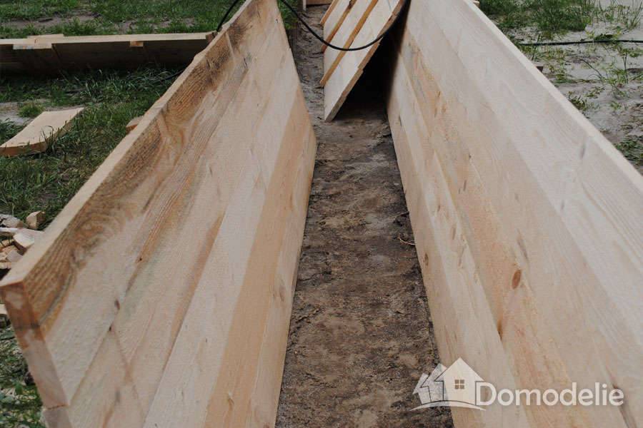 Выбирают доски соразмерно параметрам фундамента, возводимого дома. Максимальная толщина доски составляет 4 – 5 см.Опалубка из досок