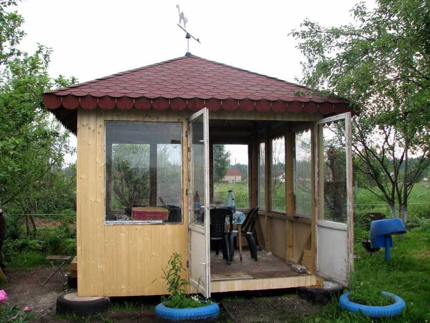 Чтобы сэкономить, но при этом получить возможность использовать беседку зимой, устанавливают конструкцию со съемными рамами.