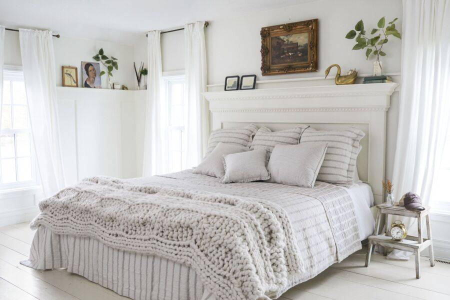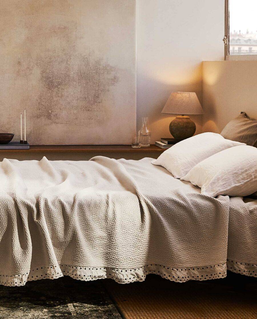 Винтажные покрывала в пастельных тонах, украшенные мелким цветочным принтом или кружевные, фланелевые, льняные и плюшевые изделия, подчеркнут нежный и легкий французский стиль и сформируют максимально уютную атмосферу.