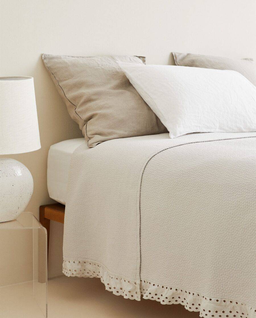 Хлопок — один из популярных и натуральных материалов для пошива покрывала. Такого плана покрывало прочное и долговечное, при этом у него средняя стоимость по сравнению с другими.