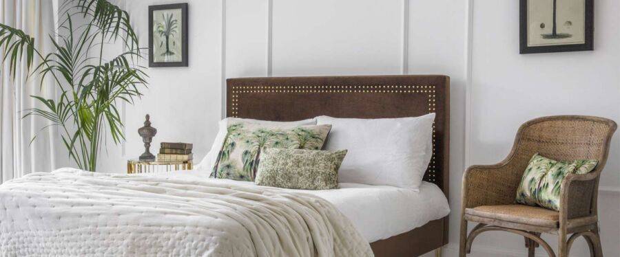 В интерьере в деревенском кантри стиле используют более плотные хлопковые или льняные покрывала с клетчатым, полосатым принтом или растительными узорами, стеганые кроватные покрытия из флока в технике пэчворк или изделия, которые можно украшать собственноручно.