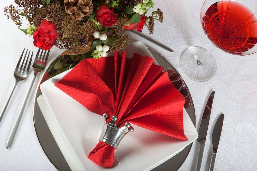 ФОТО: posudaguide.ruСалфетки можно сложить втрое и перевязать лентой – это простой и очень интересный вариант оформления