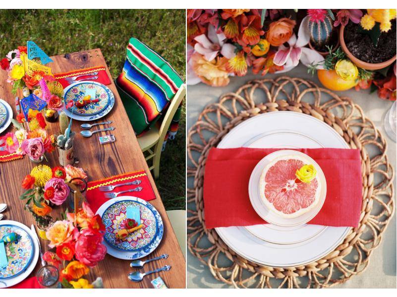 Для тематических приемов подойдут оформление экзотическими фруктами и растениями в гавайском стиле, пестрая посуда, яркие букеты, салфетки в духе Мексики и прочее. Сезонные вечеринки предполагают своеобразный декор: хвоя, шишки и мандарины на Новый год; тыквенная тематика на Хэллоуин.