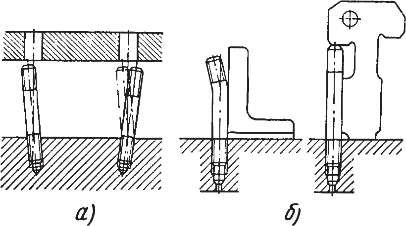 - по шаблону для нескольких шпилек (рис. 5, а);