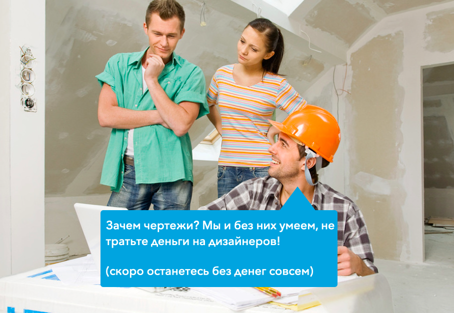 Когда ремонтник уверяет что может обойтись без чертежей, то он просто боится что вы приведете архитектора или дизайнера (который эти чертежи составит). Так вот архитектор в два счета выведет недобросовестных ремонтников на чистую воду и откроет вам глаза на обман с их стороны, чего такие ремонтники не хотят допускать.