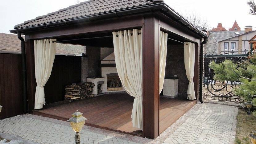 Для строительства навесов лучше всего подходит древесина влагостойких пород, например, дуб, бук, сибирская лиственница, тиковое дерево. Но и дешевую хвойную древесину использовать можно.