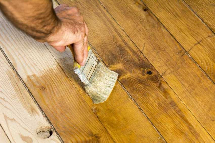 После того, как лак тщательно размешан в банке, его наносят при помощи широкой кисти с мягким ворсом или валика для краски. Работать нужно, начиная от дальнего от двери угла комнаты и продвигаясь к выходу.