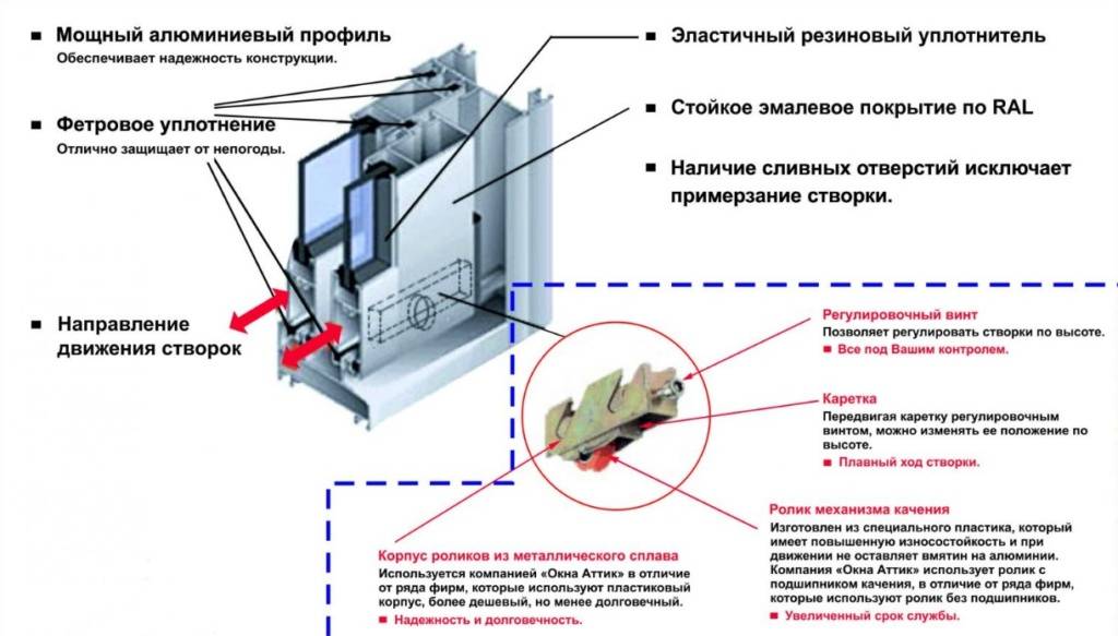 Алюминиевые рамы на балкон оборудуются двумя видами подвижных створок: