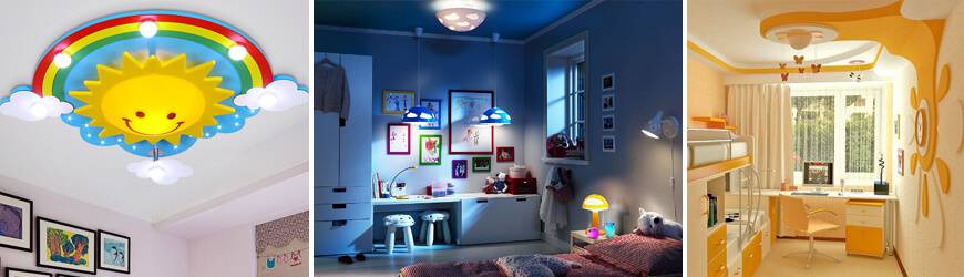 Направление дизайна всегда было основополагающим фактором при выборе дополнительных элементов. Детские комнаты чаще всего оформлены в современных стилях, поэтому можно забыть о помпезных массивных люстрах, присущих классике.