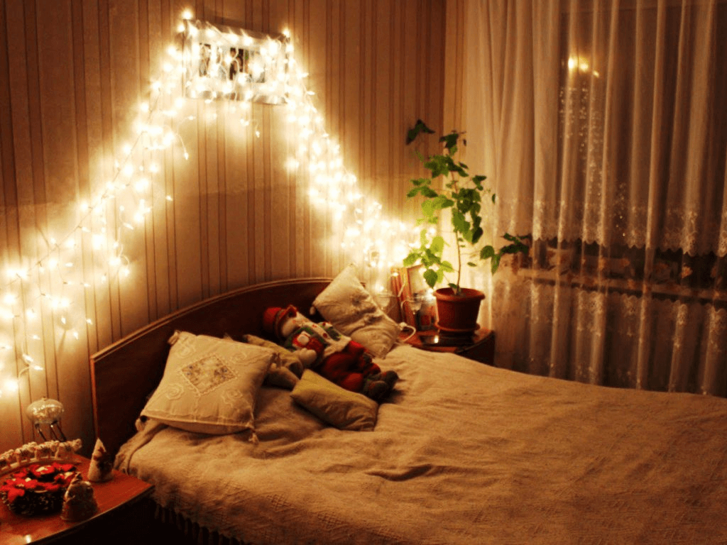 - В темное время суток яркий свет в спальне неуместен. Теплый приглушенный свет настраивает на отдых, так как помогает выработке мелатонина.