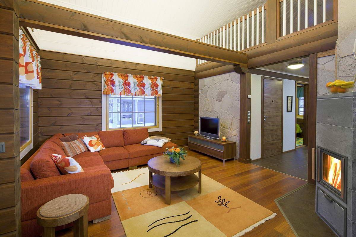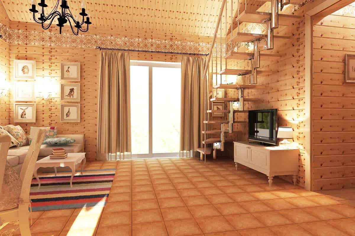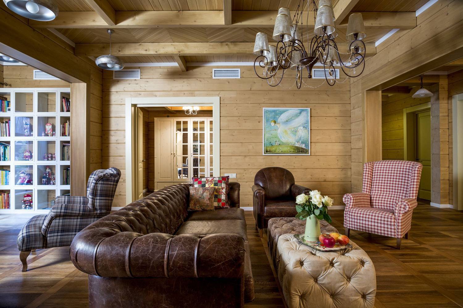 Отделка деревянного дома внутри может быть сделана и из вагонки с нестандартным профилем