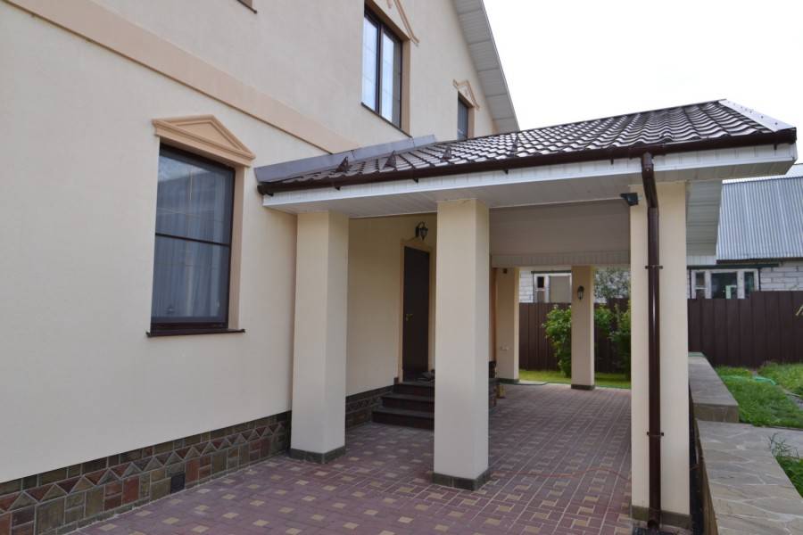 - Из сливов, из крыши вода не будет попадать на отделку фасада.