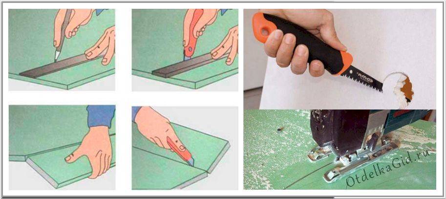 Начинайте с самой большой стены, так сэкономите материал и меньше потратите времени на резку. Гипсокартон легко режется ножом, только прикладывайте по линии резки твердый и ровный предмет, например, уровень.