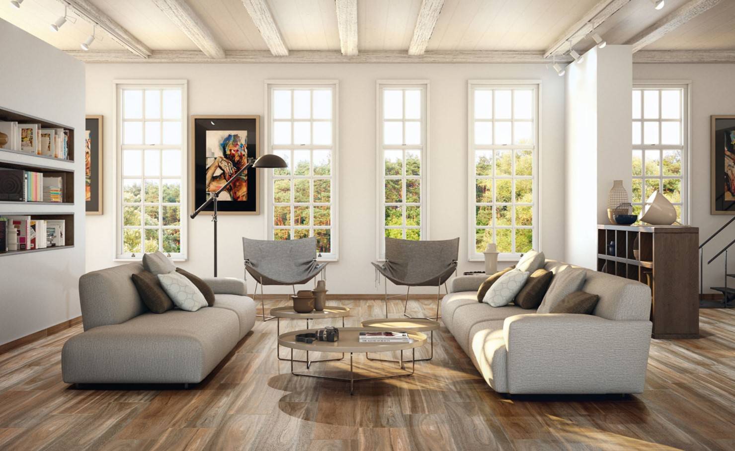 Серое дерево в интерьере успокаивает, вызывает чувство прохлады. Серый ламинат хорошо подойдет для пола в спальне, гостиной. Такой пол в зависимости от рисунка напоминает состаренное дерево и уместен для ретро и кантри. Подходит для комнат с двумя контрастными цветами. Мебель венге и другие холодные оттенки хорошо сочетаются с серой отделкой в современном интерьере.