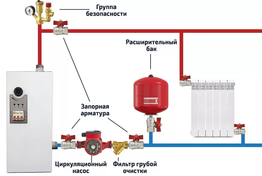 Это отопительная конструкция, в которой циркуляция носителя тепла по трубам выполняется принудительно при помощи специализированного насоса, а для его работы требуется подключение к электрической сети. Рабочий принцип закрытой установки почти что не отличается от открытой: