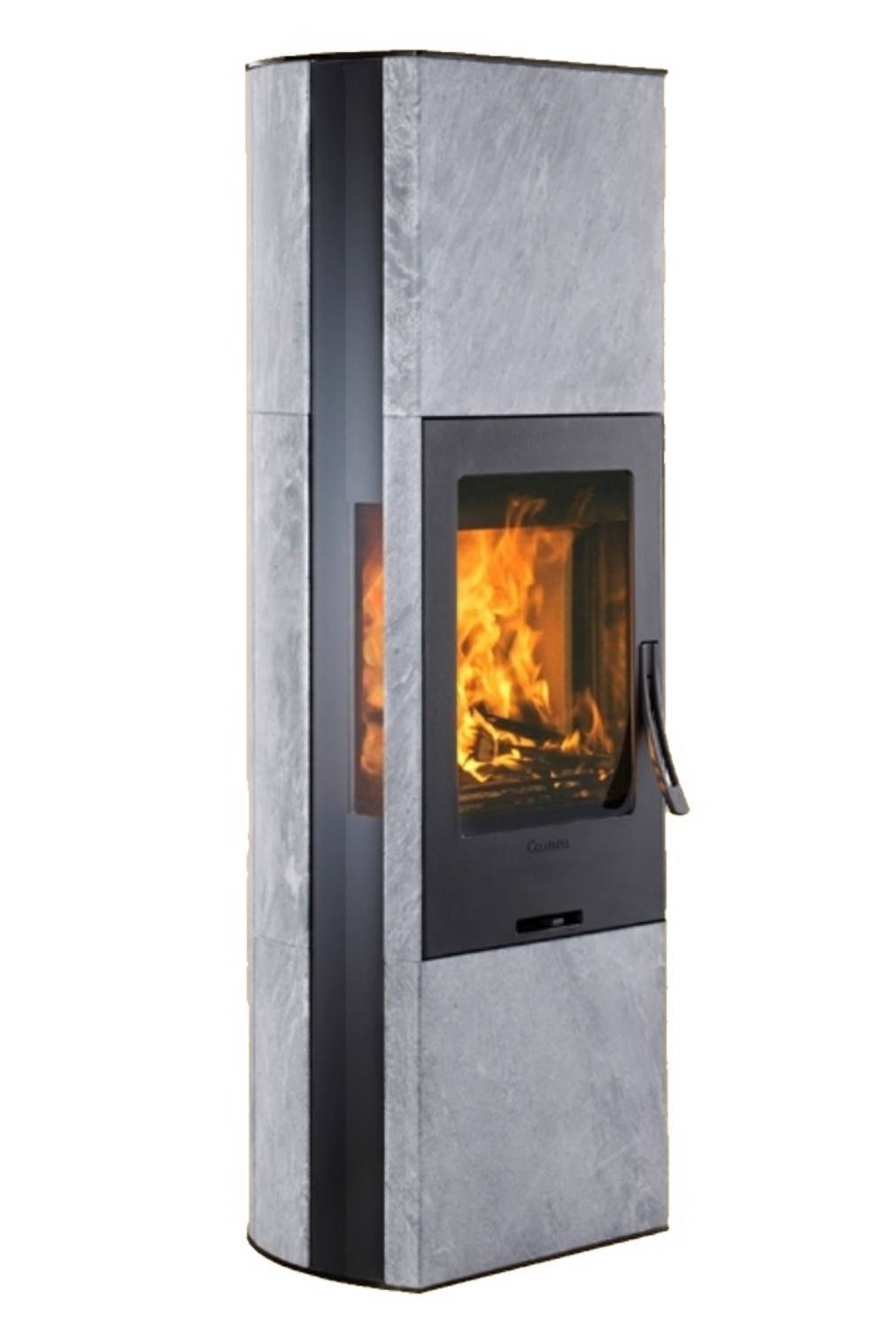 Вид этой печи говорит сам за себя — она не так компактна, как предыдущие, но имеет очень привлекательный вид, благодаря своей форме и цветовому решению. Многофункциональность агрегата позволяет решить многие хозяйственные проблемы. В духовке можно приготовить тушеные блюда, испечь хлеб или пирог, плита тоже никогда не подведет, а огонь принесет в дом комфорт и тепло. Так как печь имеет конструкцию с водяным контуром, она отопит не только отдельную комнату, но и весь дом. Кроме этого, она оснащена камерой вторичного дожига, защищенной шамотными плитами, т.е. тепло будет исходить не только от горящих дров, но и от сгорающих газов, который они выделяют в процессе тления. Панели, изготовленные из натурального камня, нагреваясь, также будут отдавать мягкое тепло в комнату и не позволят быстро остыть корпусу.