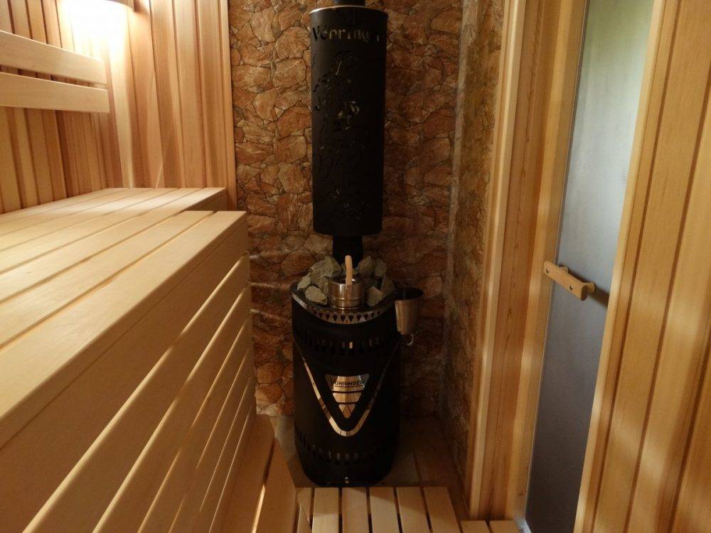 - В финской сауне должен быть сухой жар — температура колеблется от 80 до 140°С, уровень влажности от 1 до 15%.
